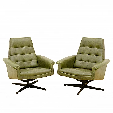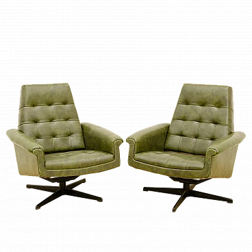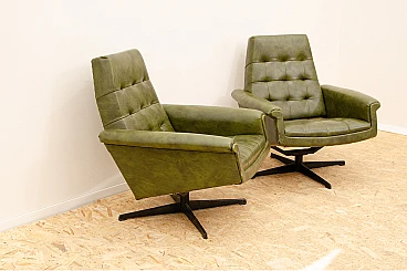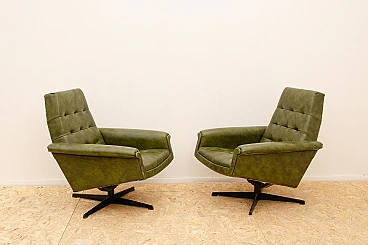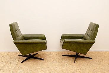 Coppia di poltrone girevoli in similpelle verde di UP Zavody, anni '70