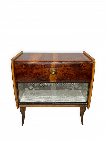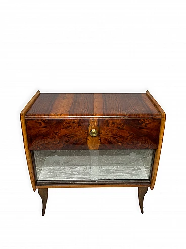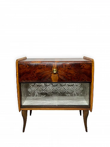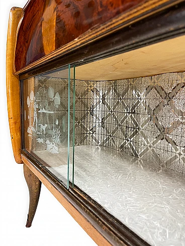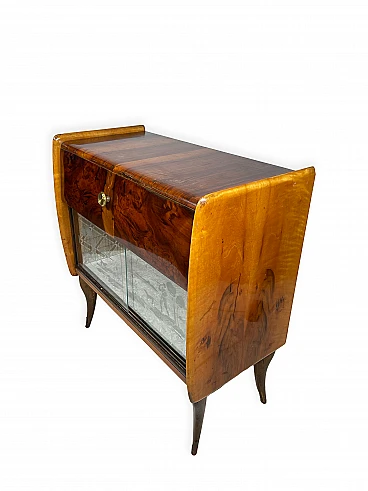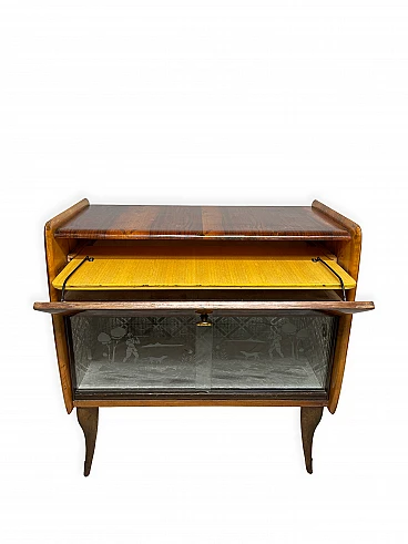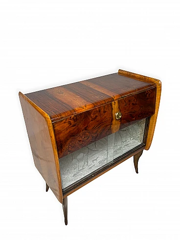 Mobile bar Art Deco in mosaico di vetro di noce, anni '50