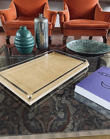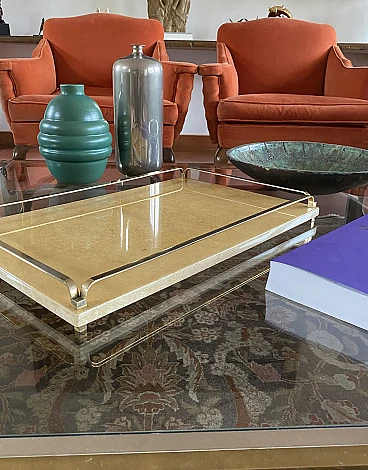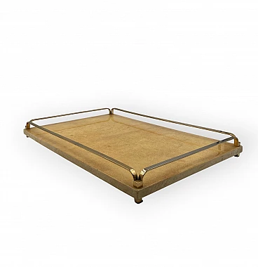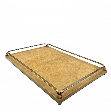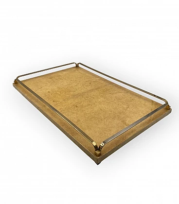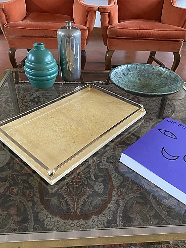 Vassoio in ottone e pergamena di Aldo Tura, anni '60
