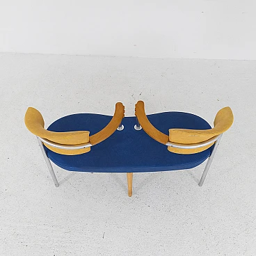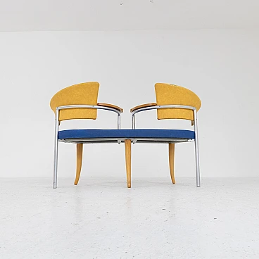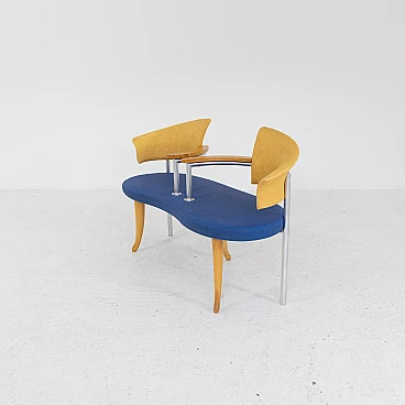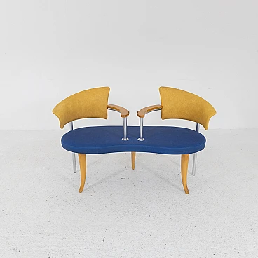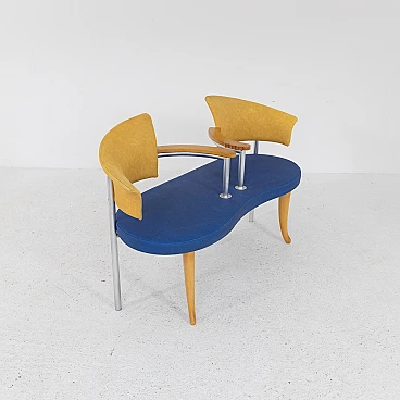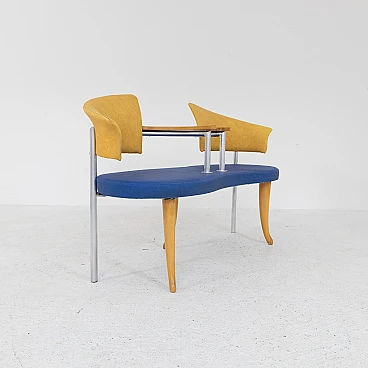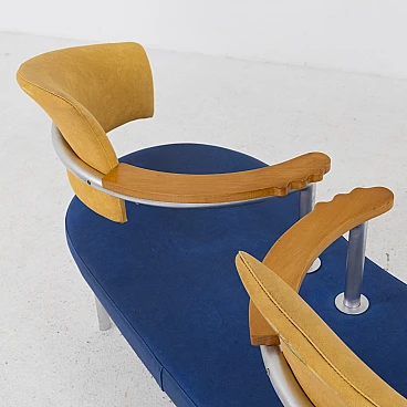 Divano in metallo, frassino e finta pelle gialla e blu, anni '80