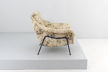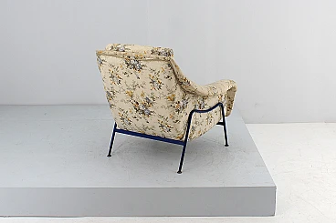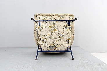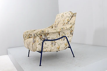 Poltrona in metallo blu e tessuto nello stile di G. Rinaldi, anni '50