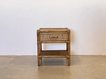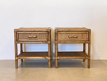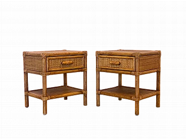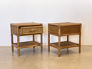Coppia di comodini in vimini e bambù, anni '70