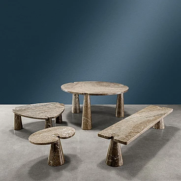 Panca Eros in marmo grigio di Angelo Mangiarotti per Skipper, anni '70