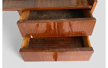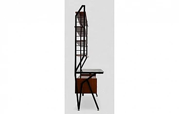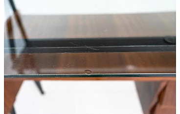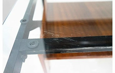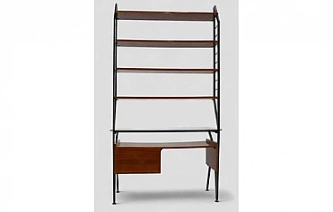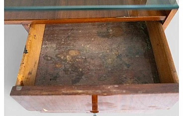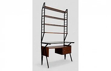 Scrivania in palissandro e vetro con cassetti e libreria, anni '70