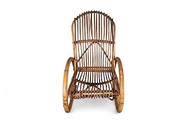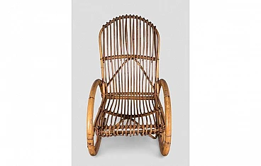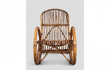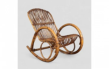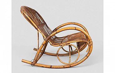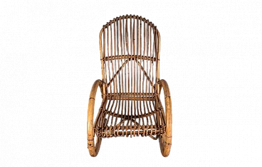 Sedia a dondolo con braccioli in bambù, anni '70