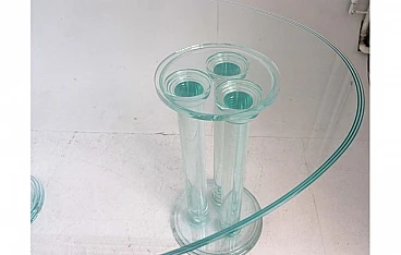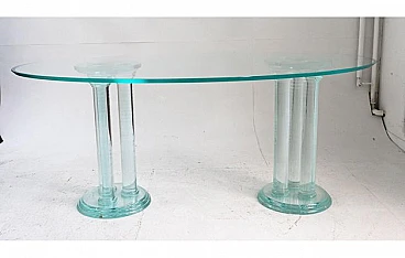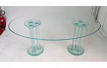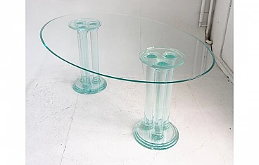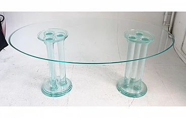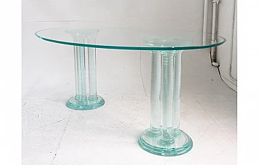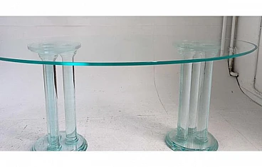 Tavolo da pranzo ovale in vetro e gambe a colonna, anni '70