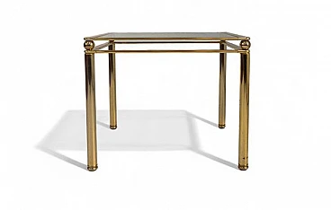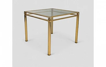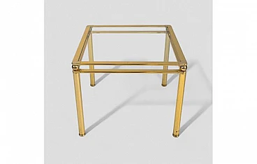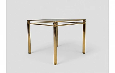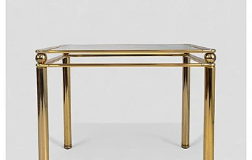 Tavolino da caffè quadrato in metallo dorato e vetro, anni '70