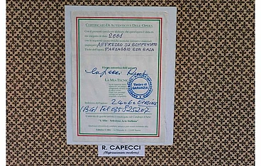 Renzo Capecci, Paesaggio con casa, affresco su compensato, 2001
