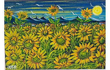 Renzo Capecci, Campo di girasoli, affresco ad olio, anni '90