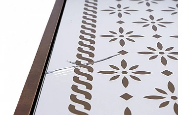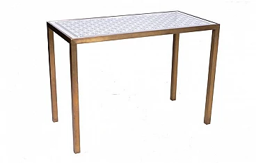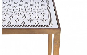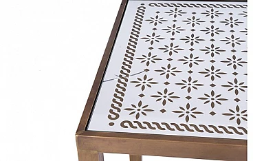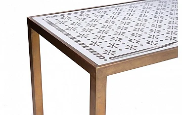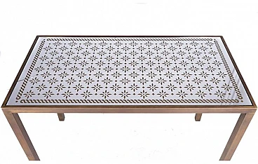 Tavolo in ottone con piano in specchio decorato, anni '60