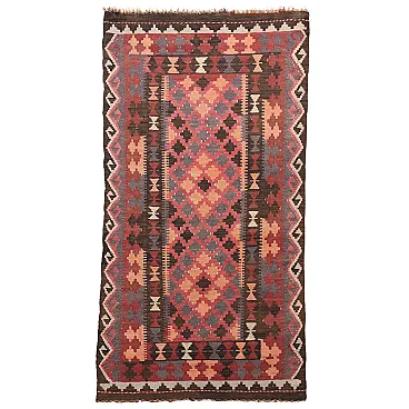 Tappeto Kilim rosso e marrone a nodo fine in lana