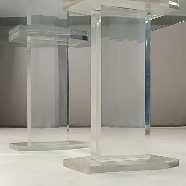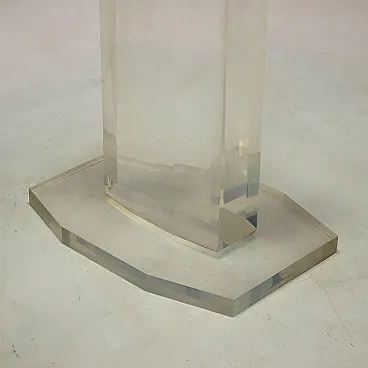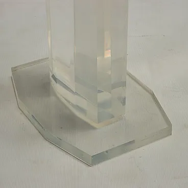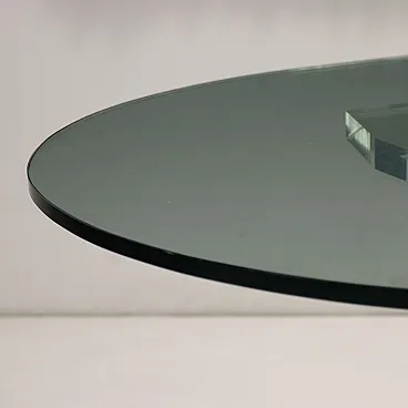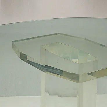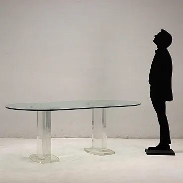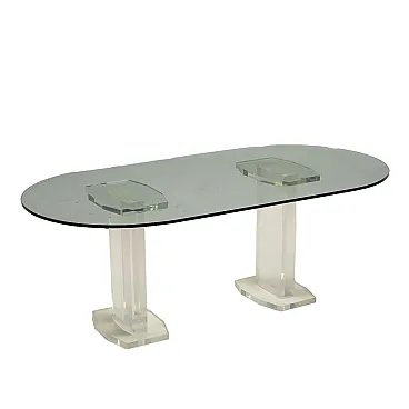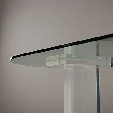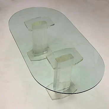 Tavolo con piano ovale in cristallo e piedi in plexiglass, anni '80