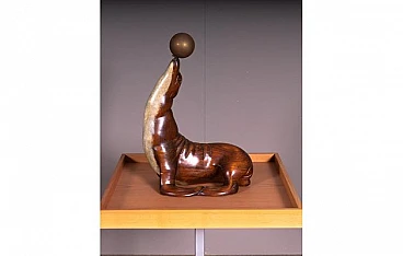 Leone marino, scultura in legno e bronzo, anni '70