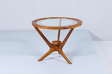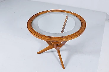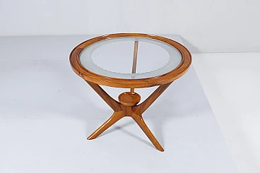 Tavolino da caffè in legno e vetro nello stile di Ico Parisi, anni '60