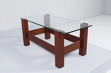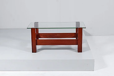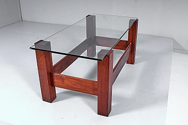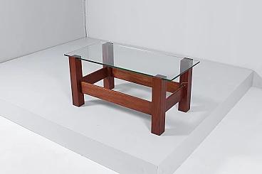 Tavolino da caffè in legno e vetro in stile Fontana Arte, anni '60