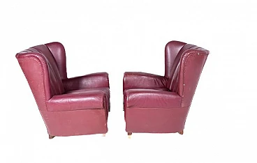 Coppia di Poltrone Savina in pelle bordeaux di Poltrona Frau, anni '60