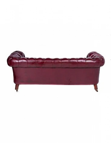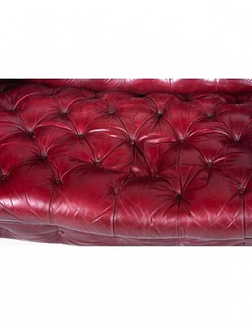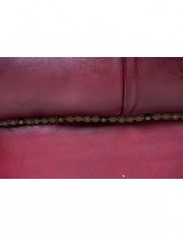 Divano Chesterfield in pelle bordeaux con gambe in legno, '800