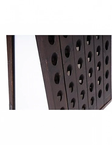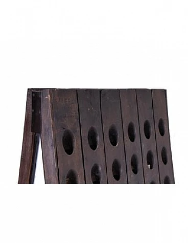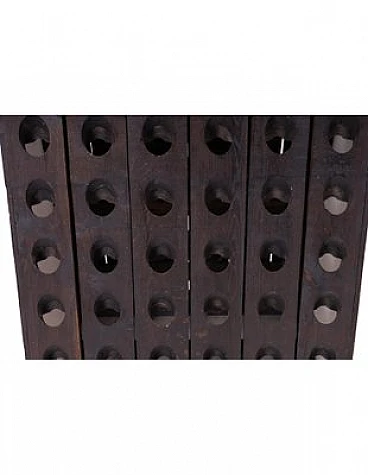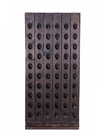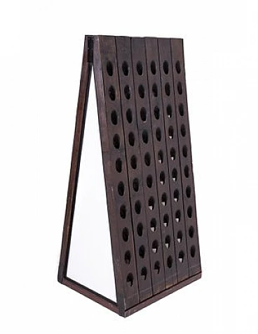 Portabottiglie, questo Pupitre può contenere fino a 120 bottiglie. La tipica esecuzione del foro permette di posizionare le bottiglie con inclinazione variabile, proprio come richiede il classico processo di "Remuage" per rimuovere la "feccia" dalla superficie interna delle bottiglie. Dotato di pannelli laterali in vetro acrilico per facilitare l'eventuale illuminazione interna. Misure: 152 x 72 x 60 cm.