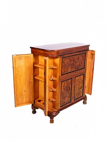 Mobile bar cinese in ciliegio con motivi cesellati, fine '800