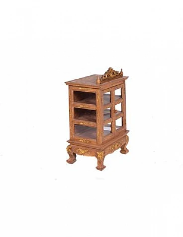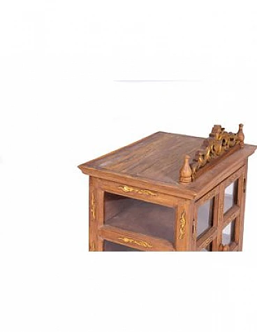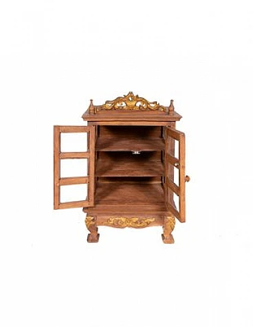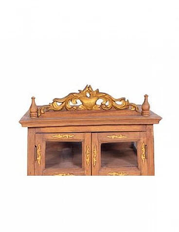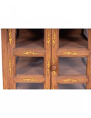 Vetrina a due ante in legno di acacia con decorazioni, metà '900