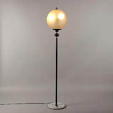 Piantana con base in marmo, metallo e diffusore in vetro, anni '60