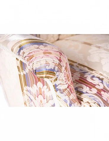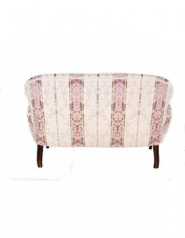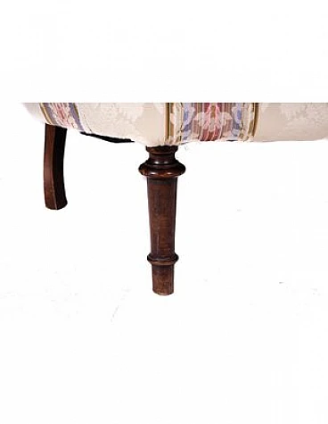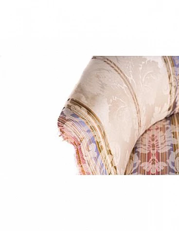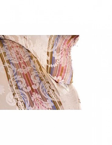 Divano e coppia di poltrone in legno e tessuto a righe, '800