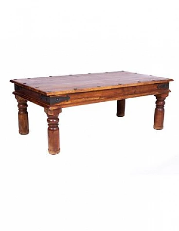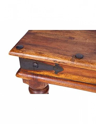 Tavolino etnico con clip in ferro e legno Barmati Tik Wood, primo '900