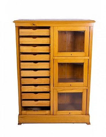 Schedario inglese in legno con otturatore e vetrine, fine '900