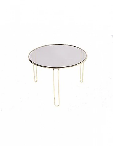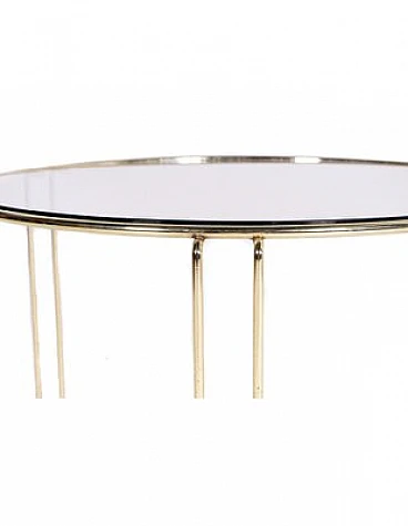Tavolino rotondo in vetro e metallo dorato, anni '90