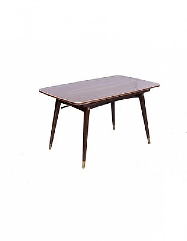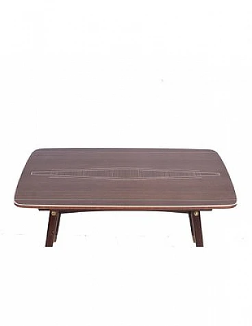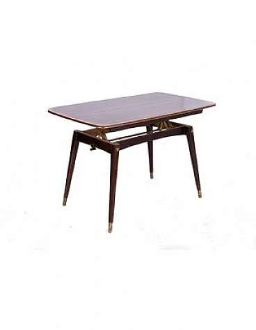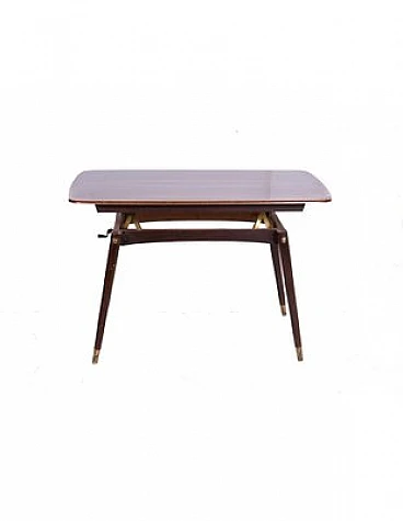 Tavolino in legno con piano rialzabile a manovella, anni '70
