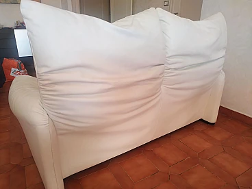 Divano Maralunga in pelle bianca di Magistretti per Cassina, anni '80