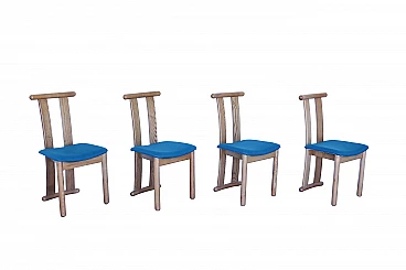 4 sedie in legno di frassino e rivestimento in tessuto azzurro. Completamente restaurato