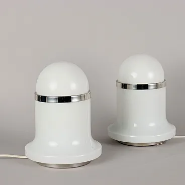 Coppia di Lampade da tavolo in vetro e metallo di Reggiani, anni '60