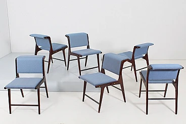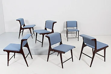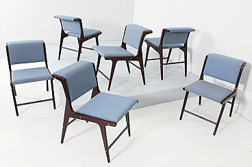 6 Sedie in legno e tessuto blu di Ezio Minotti, anni '50