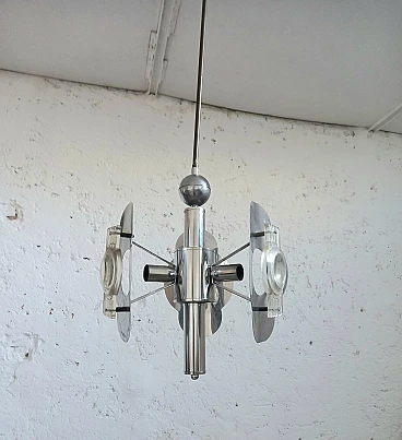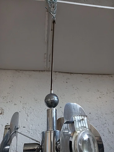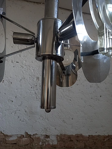 Lampadario in accciaio in stile Oscar Torlasco, anni '70