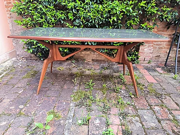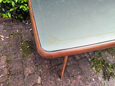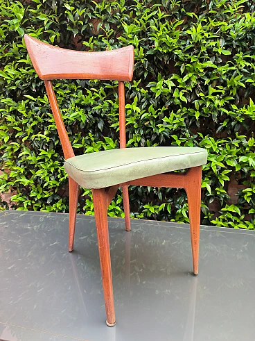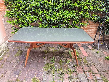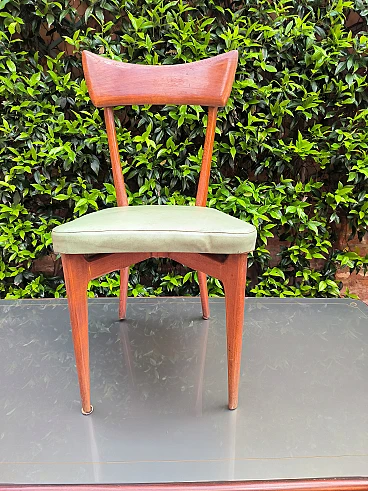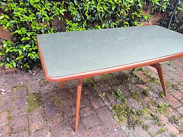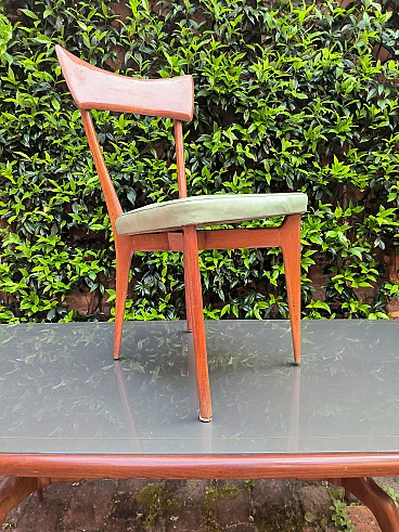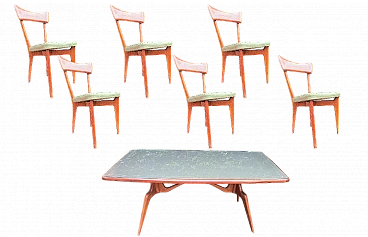 6 Sedie e tavolo in legno e cristallo, anni '50