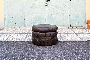 Pouf con scaletta e scomparto in vinile e legno, anni '60