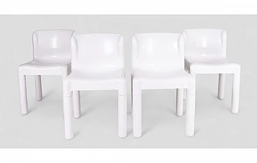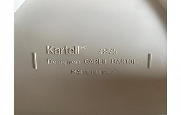 Questo set di quattro sedie bianche "4875", disegnate dal maestro del design Carlo Bartoli e prodotte dalla prestigiosa Kartell negli anni '70, è un perfetto esempio di eleganza e purezza. La scelta del bianco conferisce a queste sedie una qualità quasi scultorea, enfatizzando le linee pulite e la forma arrotondata che caratterizzano il modello.