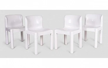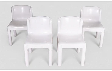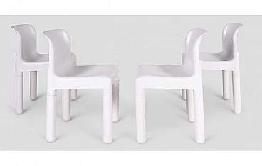 La plastica bianca, liscia e lucida, riflette la luce e si adatta facilmente a diversi ambienti, da quelli moderni a quelli più classici, portando un tocco di luminosità e freschezza. Le gambe cilindriche, anch'esse bianche, sono smontabili e conferiscono praticità al design senza tempo di queste sedie. Il logo Kartell, impresso sotto la seduta, attesta l'originalità e l'autenticità di ogni sedia, mentre i segni dell'uso e dell'età raccontano la storia di un design che ha attraversato i decenni mantenendo inalterato il suo fascino. Queste sedie non sono solo un mobile, ma un pezzo di storia del design italiano, ideale per chi cerca pezzi unici che uniscono estetica e funzionalità.