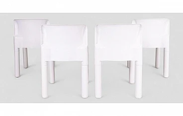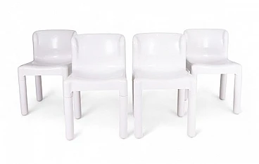 Questo set di quattro sedie bianche "4875", disegnate dal maestro del design Carlo Bartoli e prodotte dalla prestigiosa Kartell negli anni '70, è un perfetto esempio di eleganza e purezza. La scelta del bianco conferisce a queste sedie una qualità quasi scultorea, enfatizzando le linee pulite e la forma arrotondata che caratterizzano il modello.