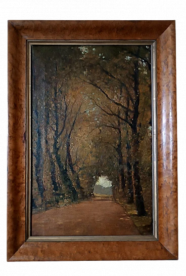 Scorcio con alberi, dipinto a olio su tela, fine '800