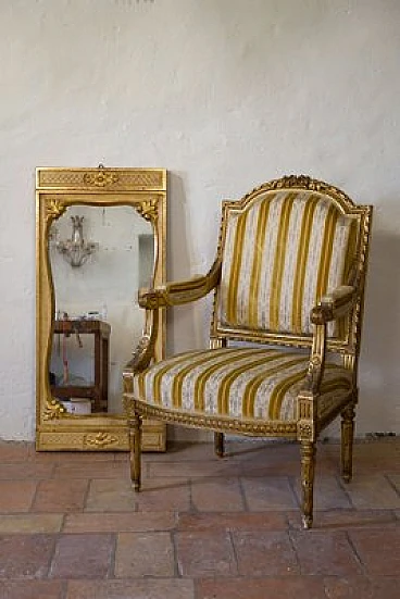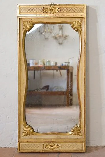 Specchio Art Nouveau in legno dorato e laccato, inizio '900