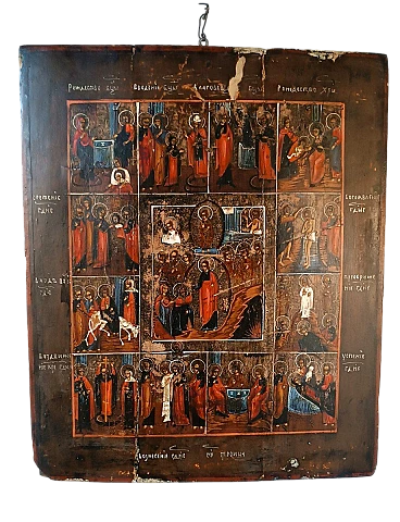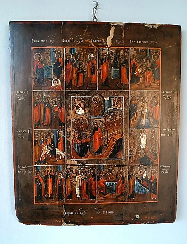 Le dodici feste, icona russa in legno dipinto, '800