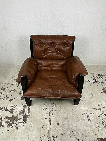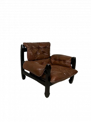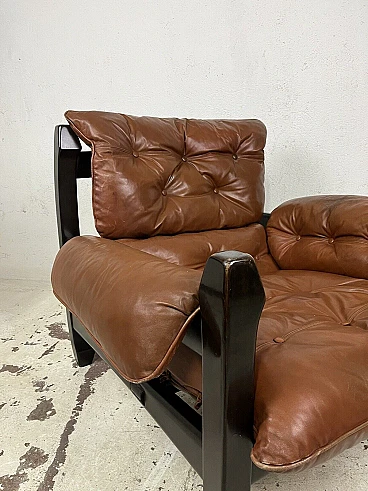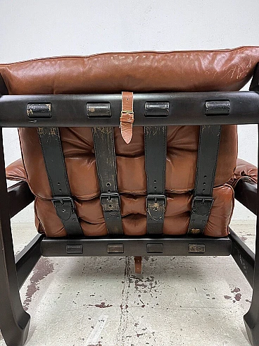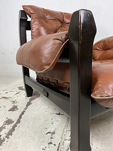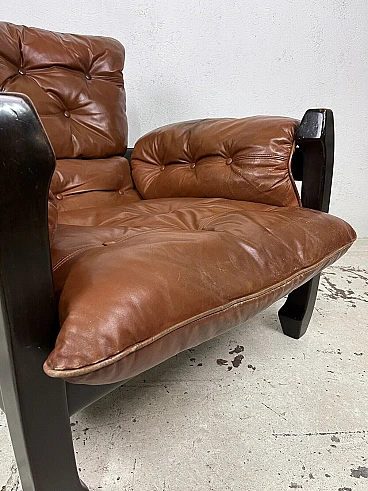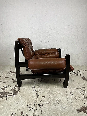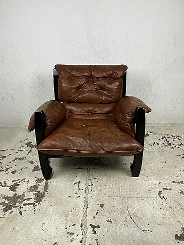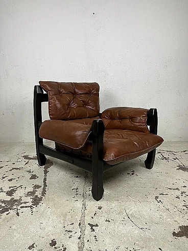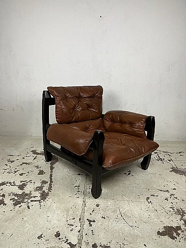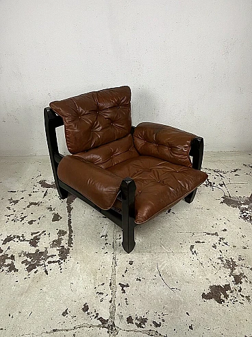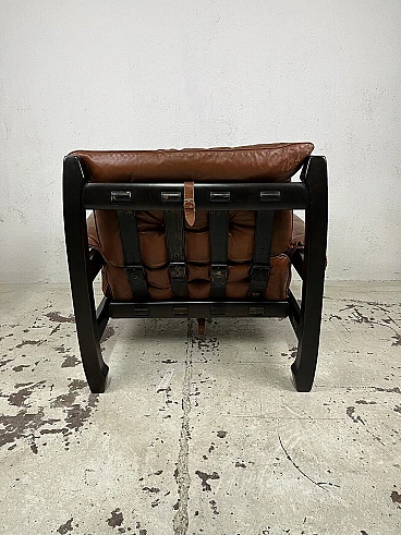 Poltrona Samurai in legno e pelle di Luciano Frigerio, anni '70