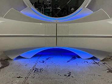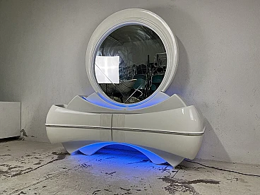 Cassettiera con specchio Space Age retroilluminata di DBM, anni '60