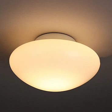 Lampada da soffitto in metallo smaltato e vetro opalino, anni '60