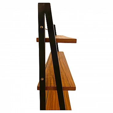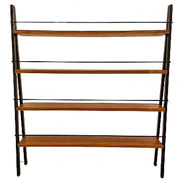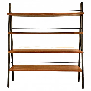 Libreria con struttura in tubolare di ferro nero e teak, anni '60