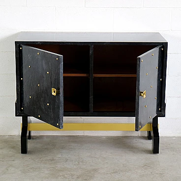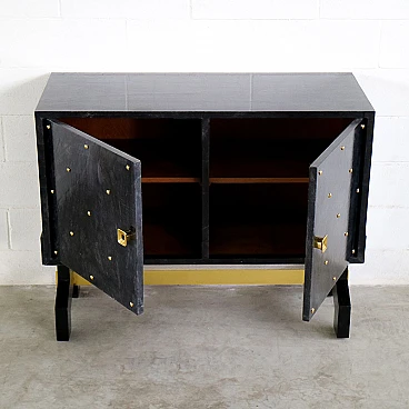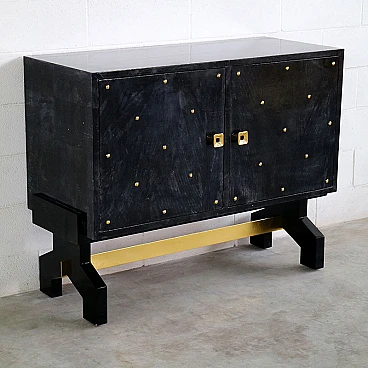 Credenza nera in legno e pergamena con dettagli dorati, anni '80