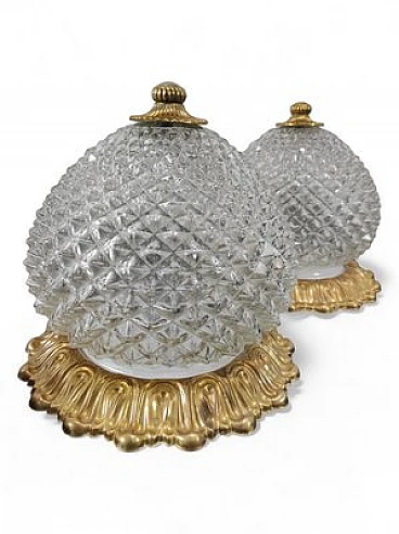 Coppia di Appliques in vetro ed ottone di Gaetano Sciolari, anni '60