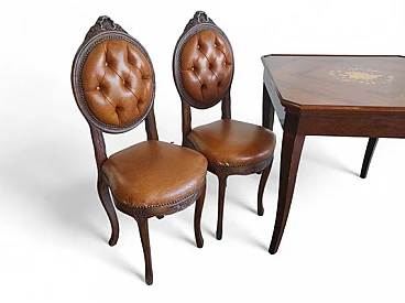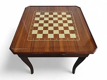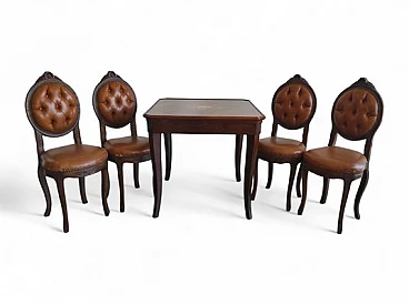 Tavolo da gioco con 4 sedie in legno e accessori, anni '80
